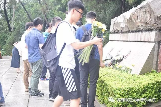 4月20日中午,在音乐学院党委的带领下,学院团委和华南师范大学合唱团在麓湖星海园开展了以“纪念人民音乐家冼星海,弘扬民族音乐文化”为主题的扫墓活动。院党委书记梁铁祥、副书记黄佳明、华南师范大学合唱团艺术总监苏严惠教授、合唱团指挥孙歆然老师、学院团委书记罗蕾老师以及部分党员代表、团员代表约60人参加了本次学习活动。