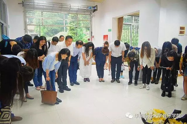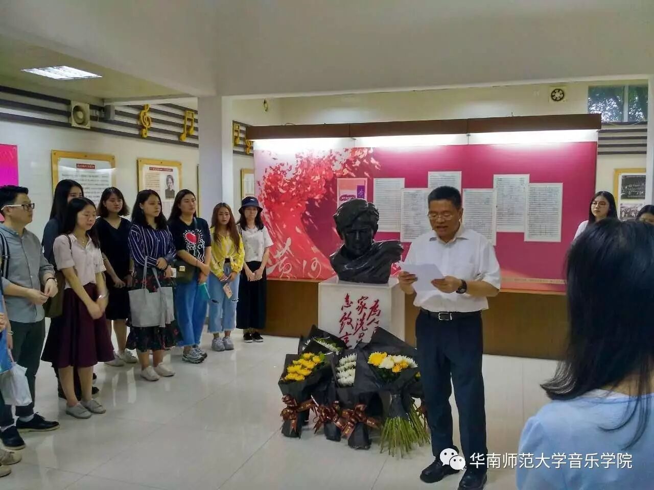 在场师生怀着敬仰之情在这位为中国革命谱写民族音乐前辈的雕塑前深深地鞠躬