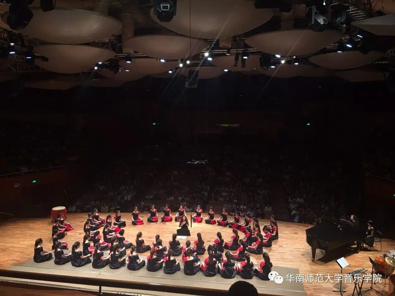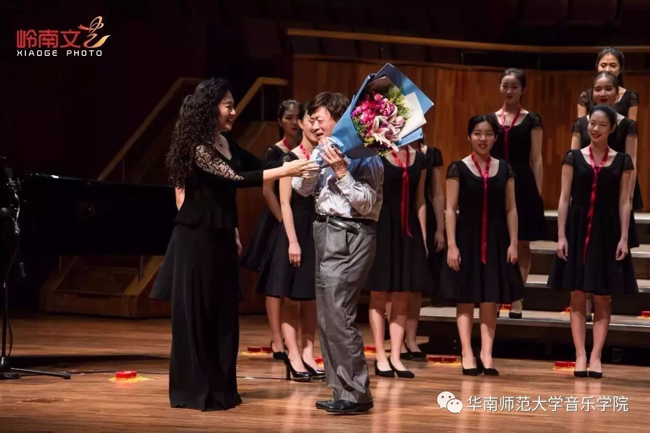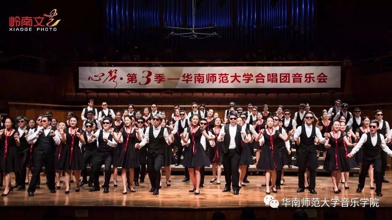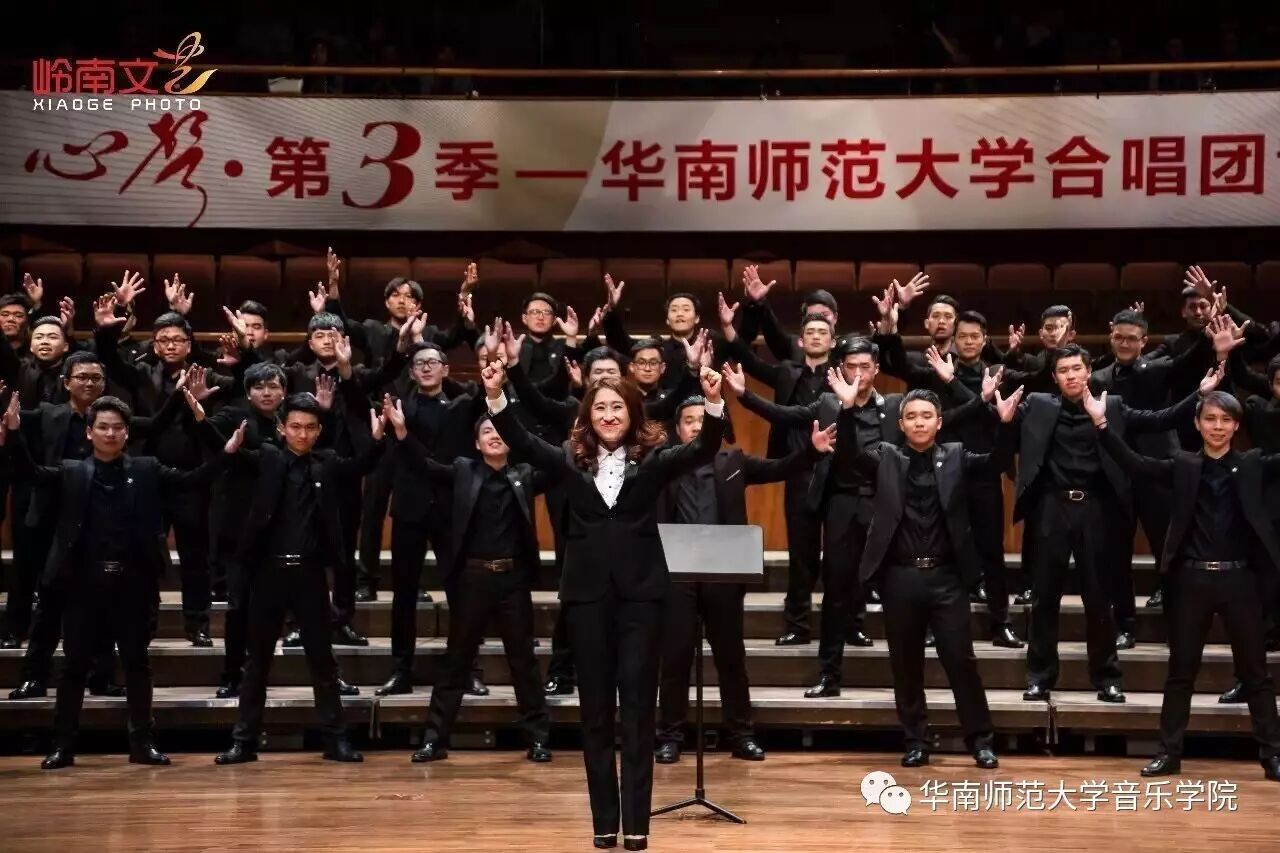 2017年4月29日晚,华南师范大学合唱团“心声”第三季音乐会在广东省星海音乐厅成功举办。本季音乐会也为期四天的“2017中国合唱新作品创作推广研讨会暨合唱指挥研修班”的总结和落幕,华南师范大学合唱团用这样一场以新作品为主的音乐会,表达我们对合唱新作品的渴望,并唤醒社会对音乐艺术创作的尊重。华南师范大学合唱团“心声”音乐会从2014年走到现在已有三个年头,每一季度的音乐会都带给听众心灵的震撼。 华南师范大学合唱团女声合唱团自成立以来,受到国内外合唱界的好评,成为广东大学生合唱团队的佼佼者,更是广东省大型合唱艺术活动的主力军。 音乐会以星海音乐学院房晓敏教授改编的女声合唱《我像雪花天上来》开场,分为上、下半场进行。在苏严惠老师的指导下,华南师范大学合唱团女声合唱团首先为听众们带来由本院郭和初教授改编的粤语童谣《月光光》和许新华教授改编的曲江民歌《落水天》,丰富的和声及广东音乐的特色带给听众无限的亲切感。接下来,女声合唱团为大家带来吉林大学珠海学院音乐舞蹈学院夏炎彬老师的原创作品——《苏幕遮·怀旧》,该曲由华南师范大学合唱团女声合唱团于2015年在欧洲首演。